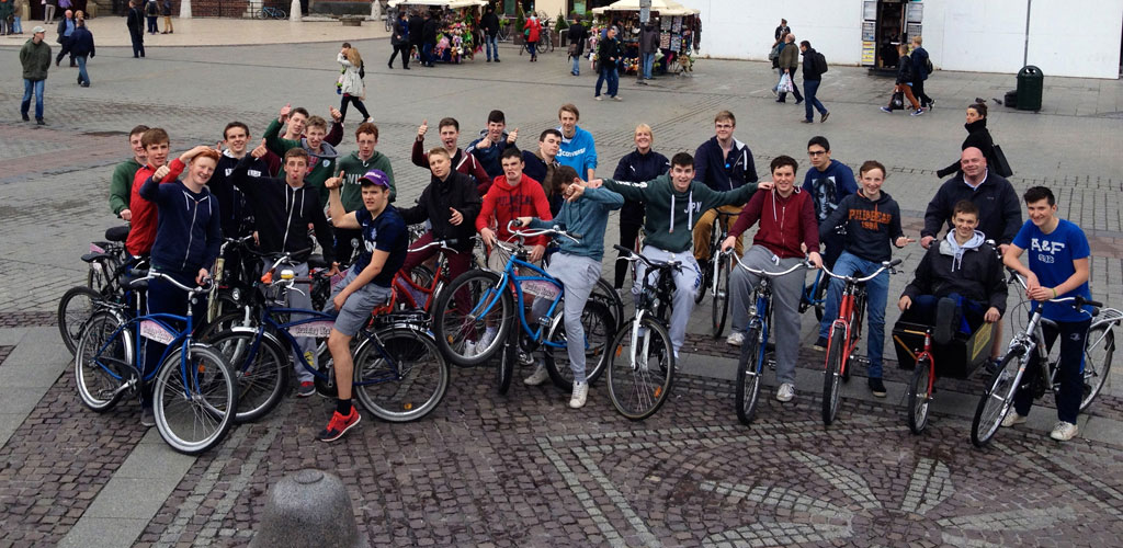 Our City Bike Tour begins everyday under the Adam Mickiewicz statue in the main market square. No need for bikes quite yet. We meet first, introduce ourselves and the city before heading off together to equip each of our guests with a beach cruiser of their own. If you would like to book your tour please fill out the form at the bottom of the page and wait for an email response.